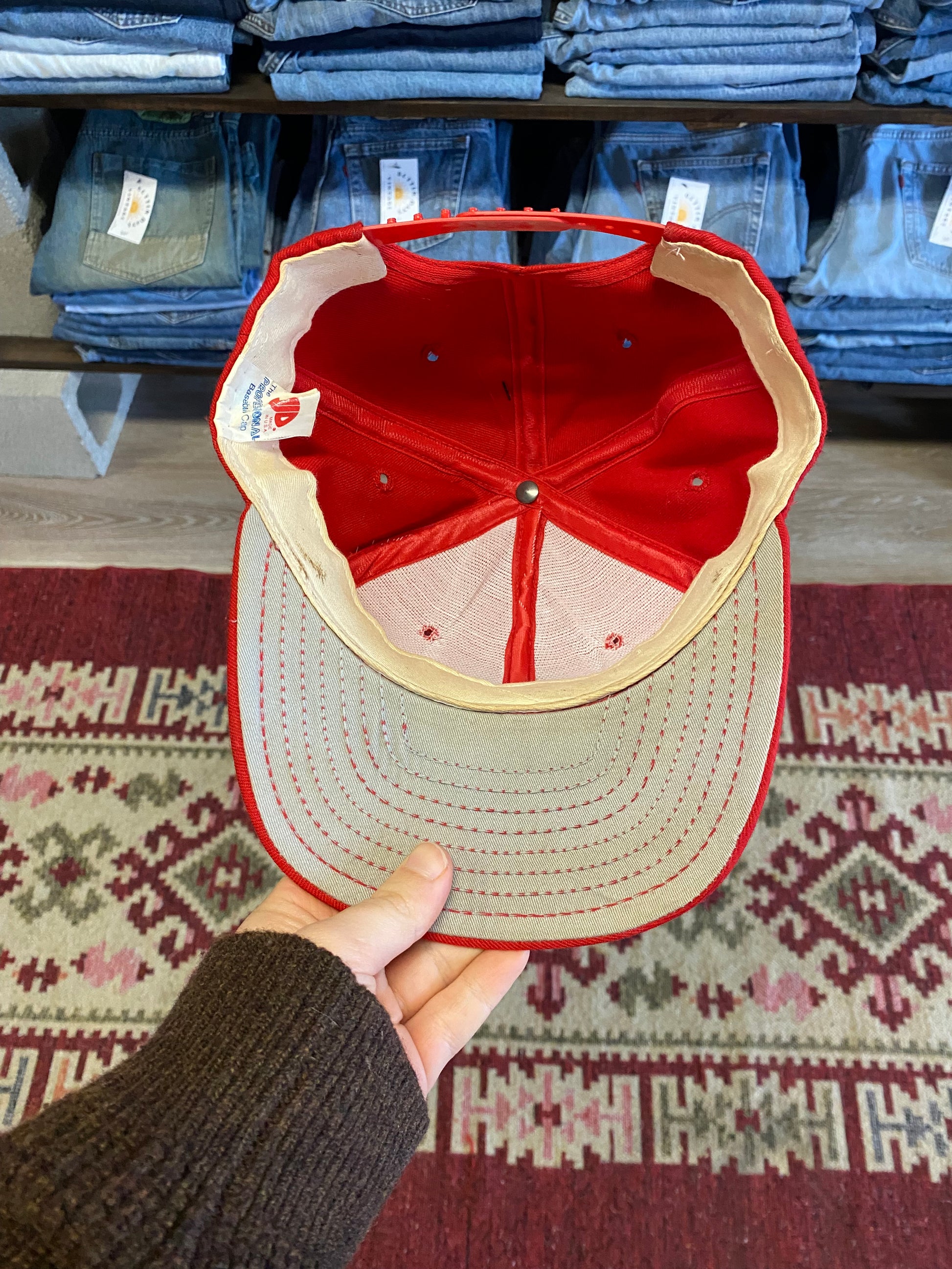 This is a vintage garment that has been treated with care and we recommend washing inside out in cool/cold water to best preserve its condition.