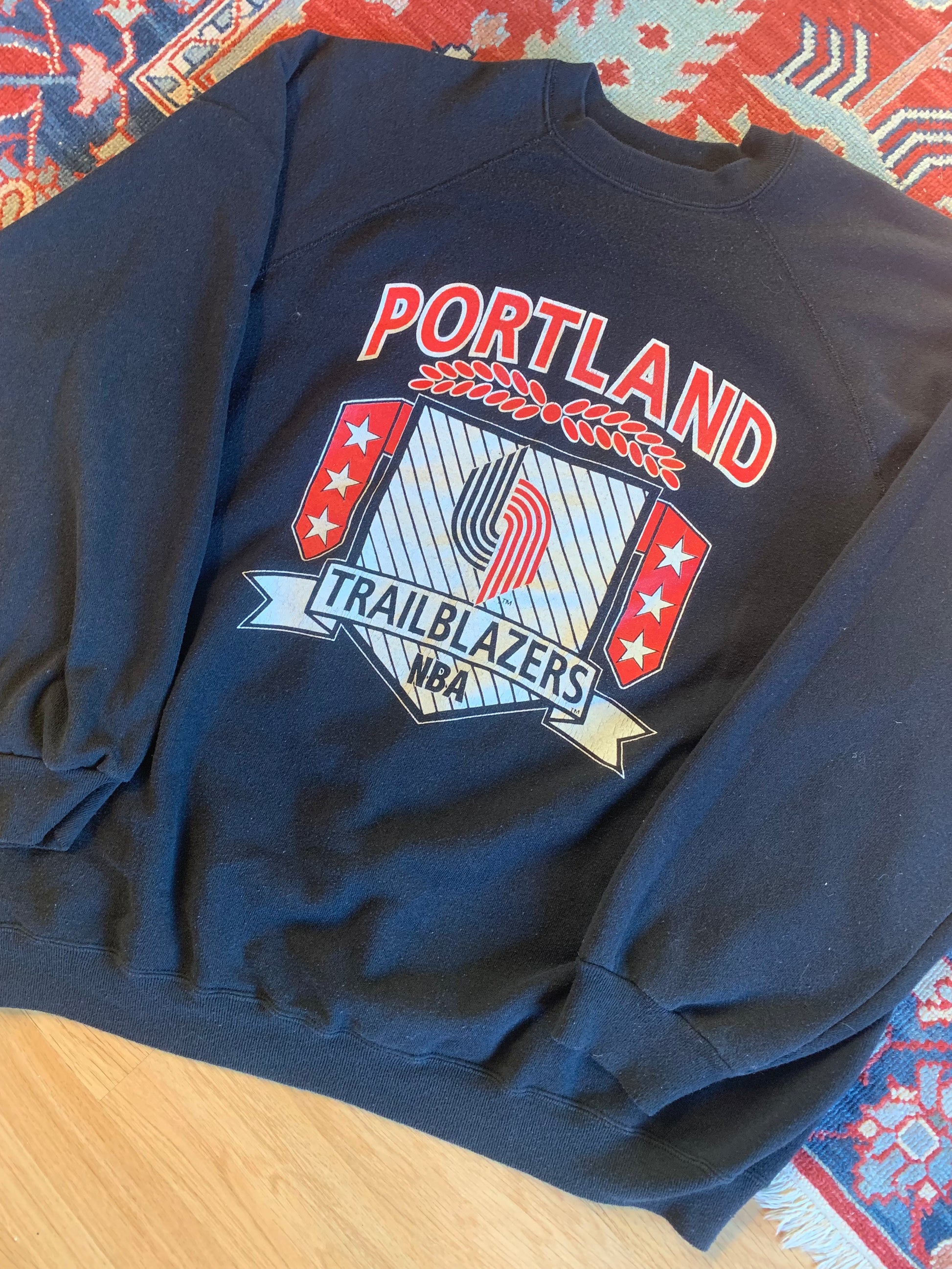 Vintage 80’s Portland Trail Blazers Raglan Style Crewneck Sweatshirt. Lightweight and cozy feel.